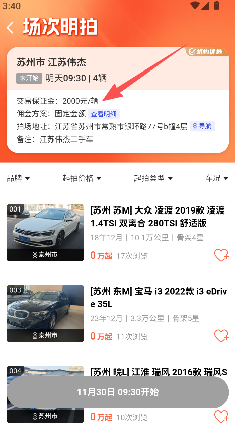 3、进入场次详情页,查看车辆信息及拍卖规则。