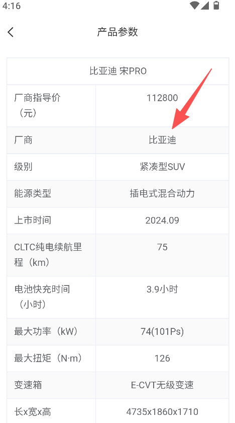 2、支持车型参数查询功能,获取厂商、续航等细节,全面掌握目标车型的核心配置信息。