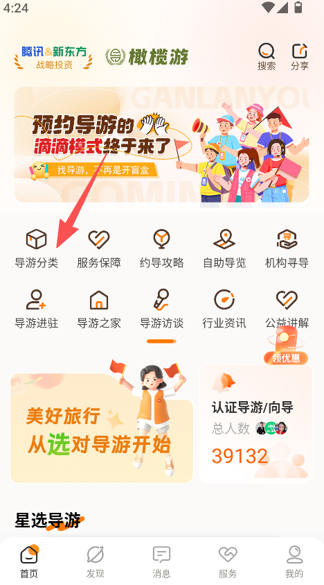 1、提供导游分类功能,查看不同等级导游的资质、服务定位,完成契合需求的导游选择。