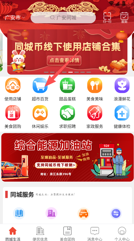 1、是广安本地生活服务软件,设超市百货等多板块,覆盖同城各类生活服务,适配本地日常需求。