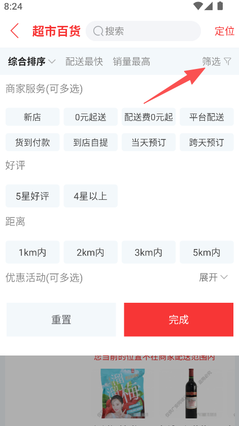 2、支持筛选功能,设置商家服务距离等条件,匹配契合需求的同城商家及商品。
