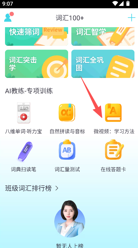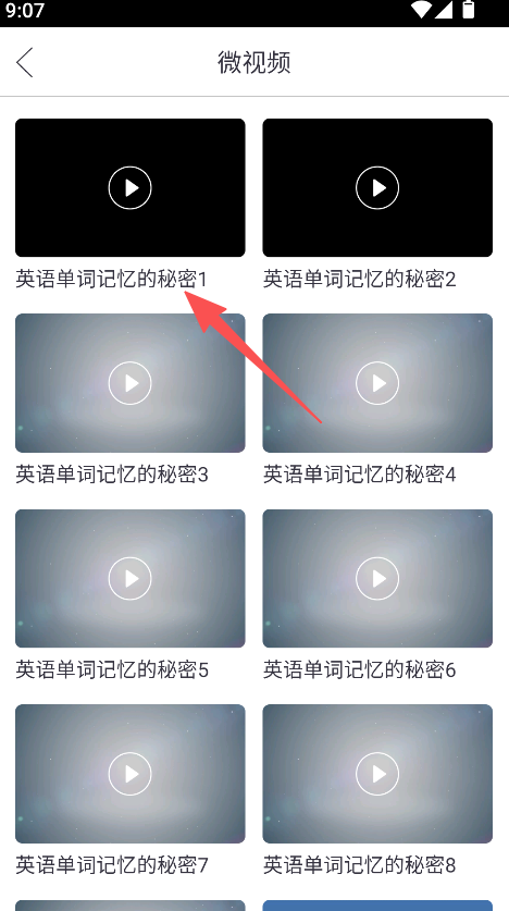 2、支持微视频学习功能,选择目标视频,观看词汇学习方法,推进词汇学习的辅助流程。