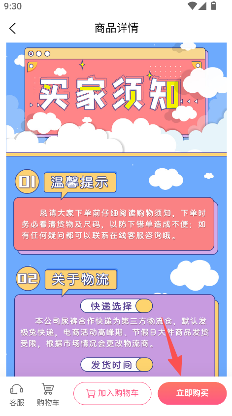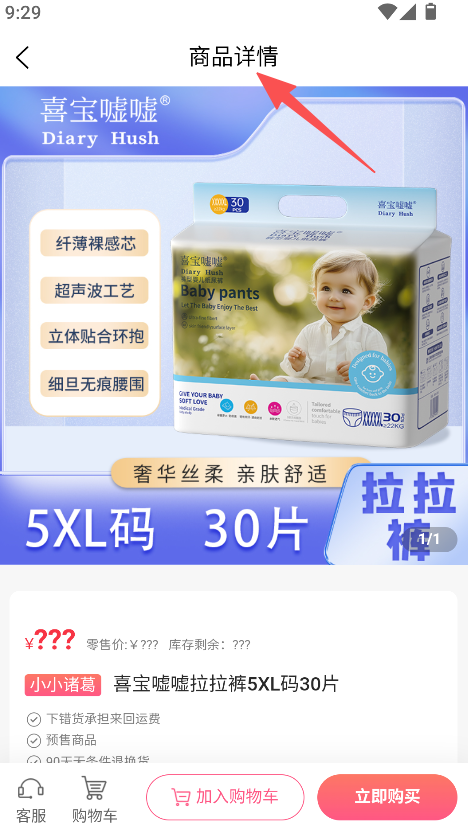 3、采购流程便捷,商品页直接操作购买,配合买家须知,增强母婴采购的顺畅性与可靠性。