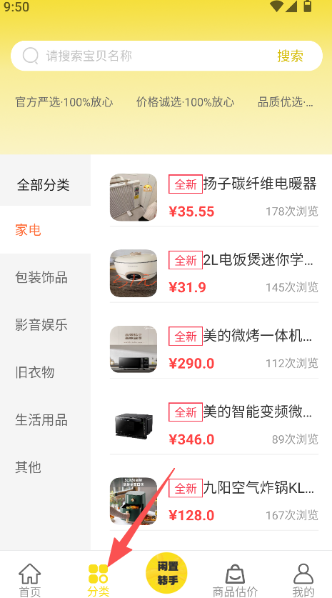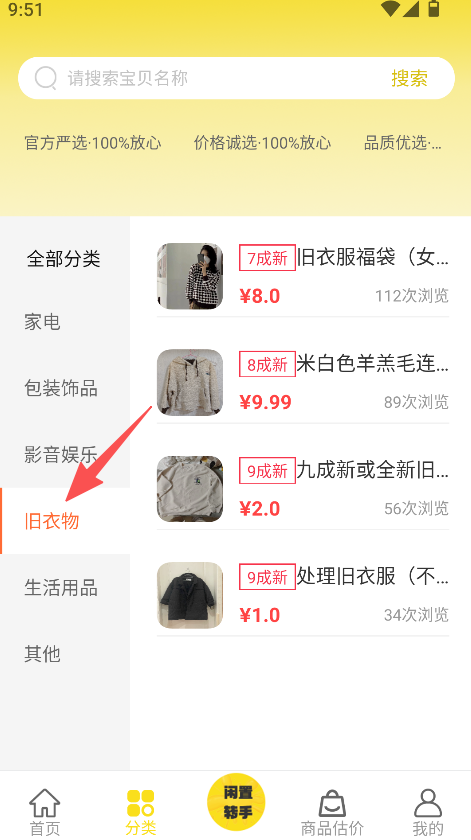 1、提供闲置商品分类浏览功能,选择对应品类,获取物品信息,推进闲置商品的选择流程。