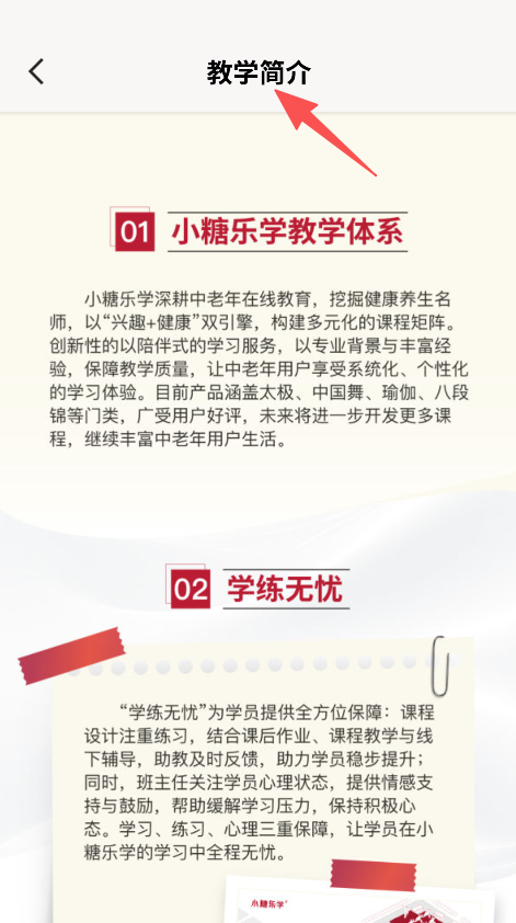 3、实现教学体系了解功能,进入教学简介页,掌握学练无忧体系的服务内容。