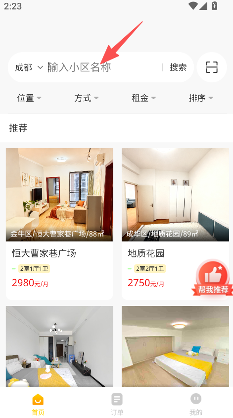3、浏览推荐房源,点击帮我推荐获取适配选项。