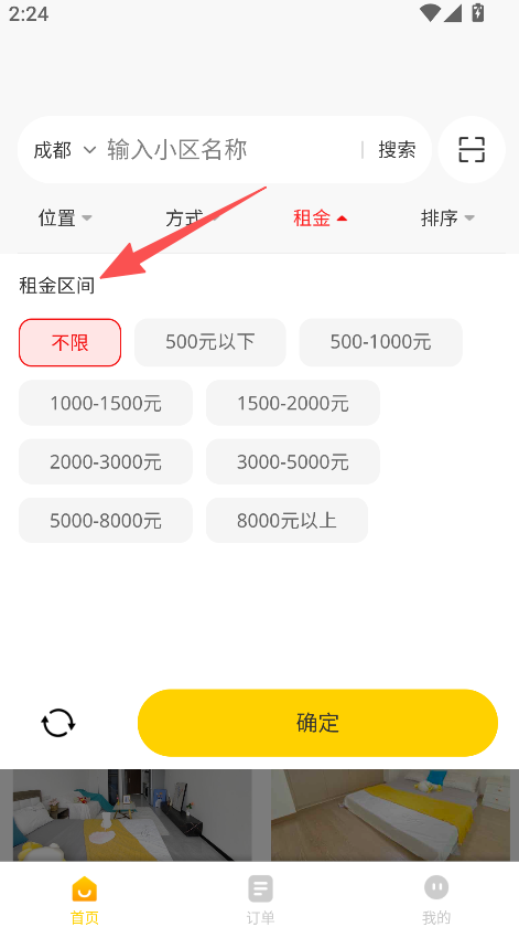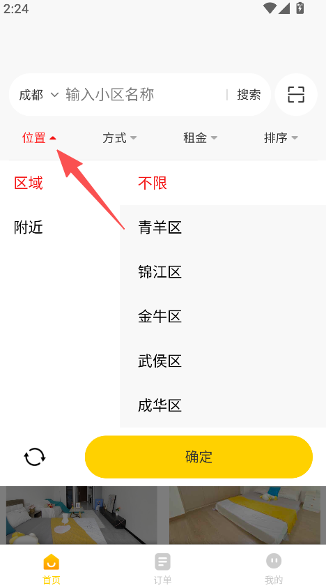 1、提供位置、租金等筛选功能,可选择区域、设置租金区间,精准查找对应条件的租房房源。