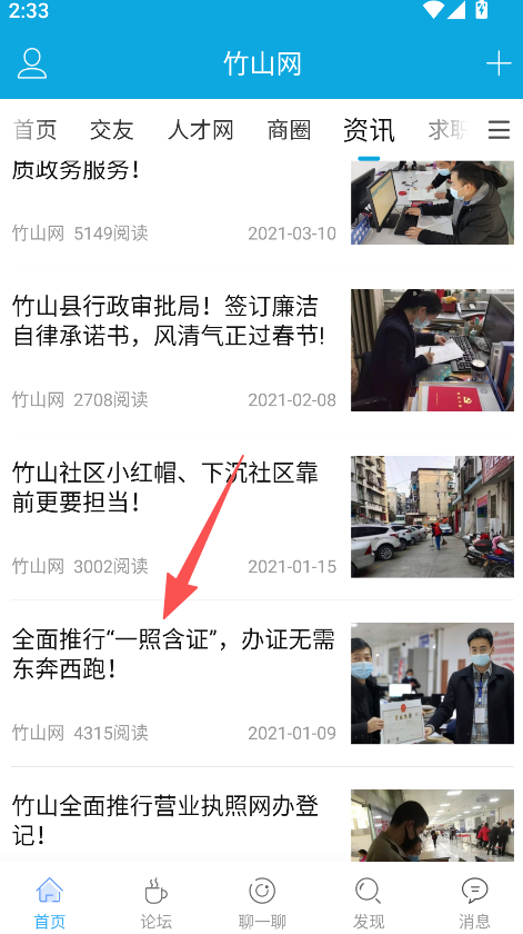 1、提供首页、交友、人才网等板块入口,呈现竹山本地资讯,为了解区域动态提供精准渠道。