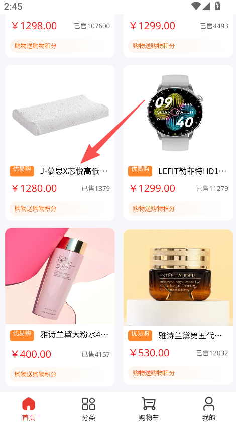 2、在优易购列表里,点击目标商品条目。