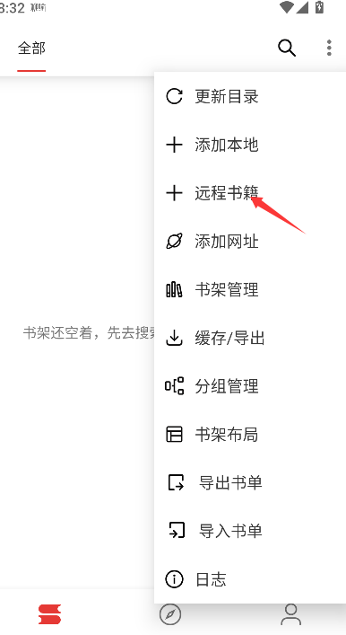 2、选择“远程书籍”这一选项,即可进入管理远程书源的专门界面。