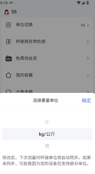 3、点选“斤”作为新的重量单位,然后点击页面右上角的“确定”按钮以确认选择,即可成功将显示单位切换为斤。