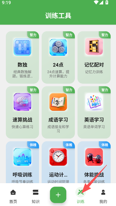 1、聚焦综合能力训练,设训练工具板块并划分智力体魄等类别,含数独等项目,覆盖多维度能力训练需求。