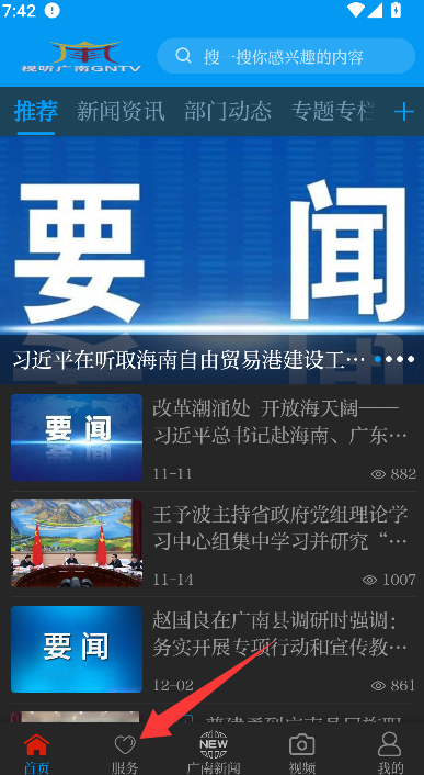 1、在应用主界面底部导航栏或功能区中找到并点击"服务"选项,进入综合服务页面。