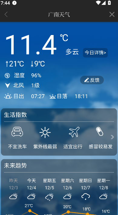 3、页面将展示包含温度、湿度、风向风力、空气质量指数等多维度的气象数据详情。