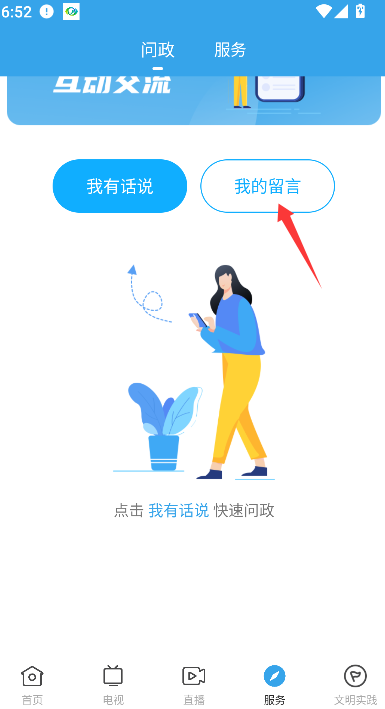 2、在服务页面内,选择“我的留言”功能选项,进入留言管理与查看界面。