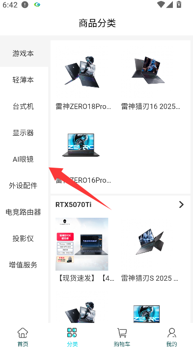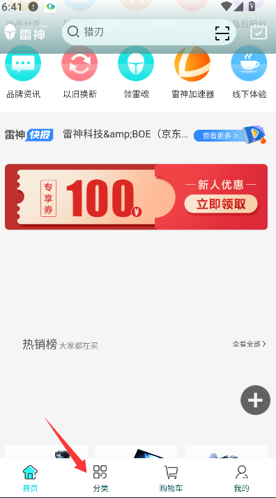 1、在应用首页找到并点击"分类"导航入口,进入商品分类列表页面。