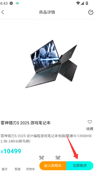 3、点击目标商品进入详情页,可直接点击购买按钮完成下单操作。