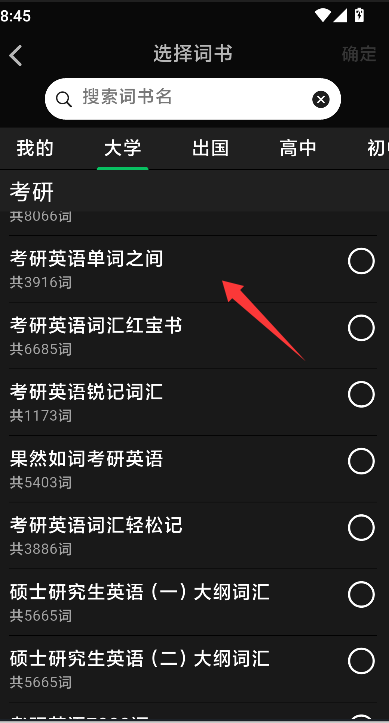 2、进入学习模式后,可根据备考目标选择对应词书分类或特定主题单元进行学习。