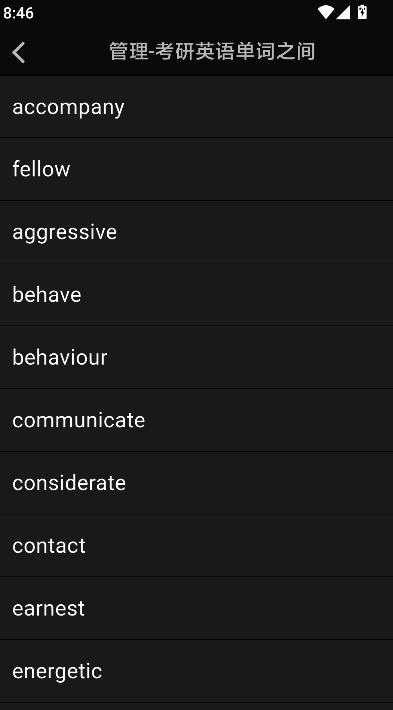 3、选定板块后界面会展示单词列表,每个单词卡片包含发音、释义、例句等详细信息。