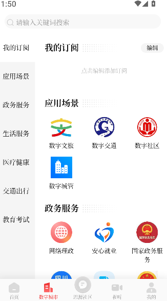 2、在首页底部功能导航栏找到 “数字城市” 板块,进入后点击 “我的订阅”,查看已关注的政务、服务等专属内容。