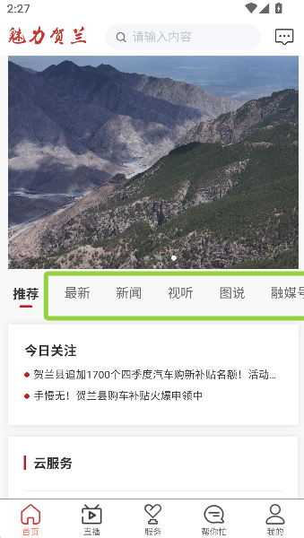 2、中间板块犹如热闹市集,新闻区播报贺兰山最新动态,试听区用声音演绎历史故事,图说区以画面定格壮丽风光,让人目不暇接。