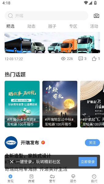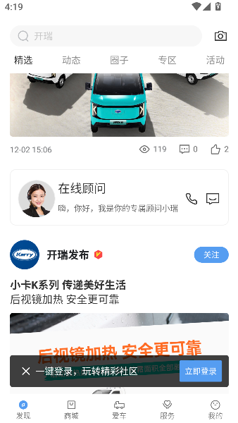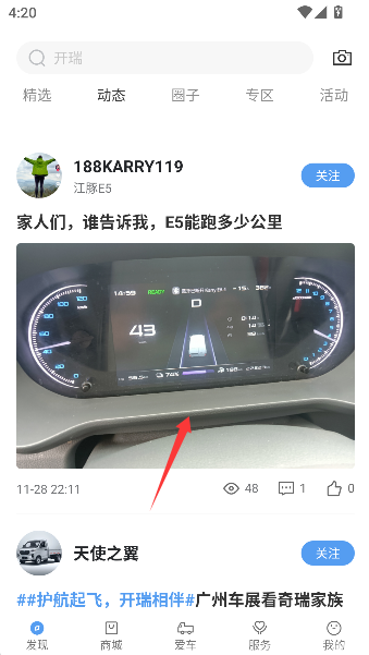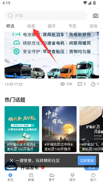 1、点击首页顶部动态,如同打开车顶天窗,新鲜的车友分享、官方资讯与实用技巧便如沿途风景般扑面而来。