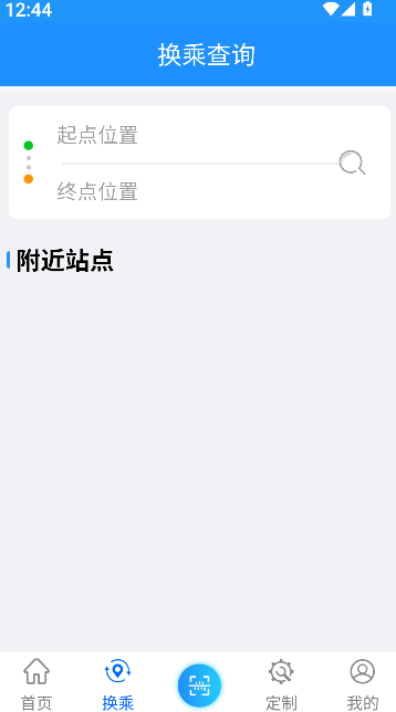 2、在查询页面中,通过定位或手动输入确定出发地与目的地,点击查询按钮触发路线规划。