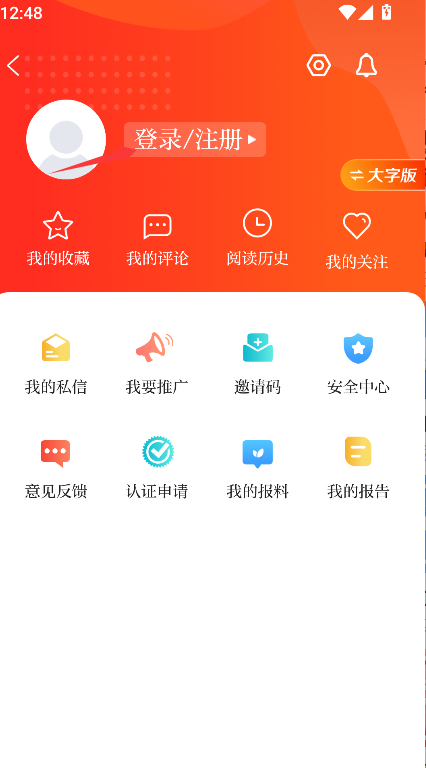 2、清晰定位“登录/注册”按钮,点击后系统会进入账号验证流程的选择界面。
