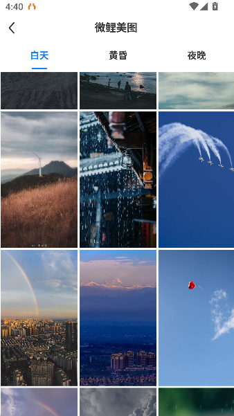 2、轻触“天气美图”选项,立刻置身于一个展现各类天气景象的数字展馆,可供浏览并选取钟意的天际画面。