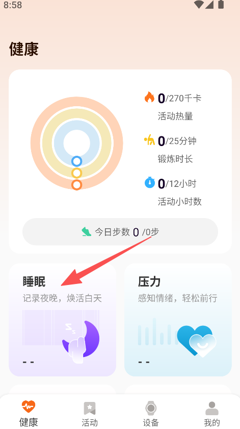 1、将活动数据与健康数据整合在健康页面,直观展示各项数据进度,便于快速了解自身当前状态。