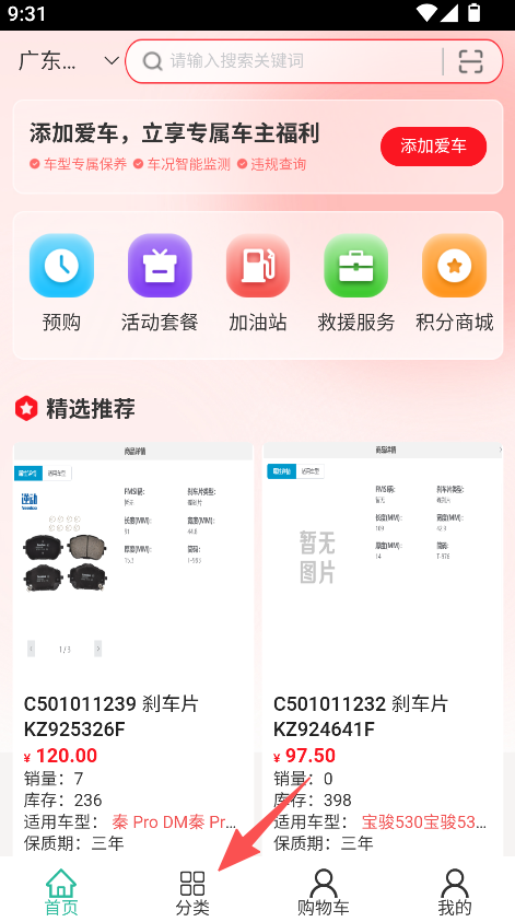 2、商品分类明确且贴合车辆需求,如汽车养护品等分类精准,便于快速筛选目标商品。