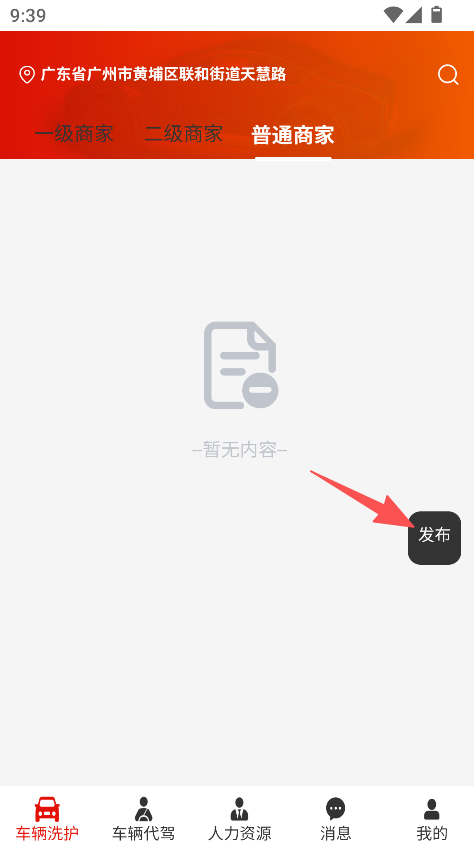 1、打开《连邦服务》,进入车辆洗护板块,点击发布按钮。