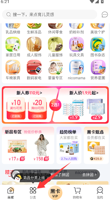 1、在应用主界面找到并点击"分类"入口,进入按商品类型系统划分的浏览页面。