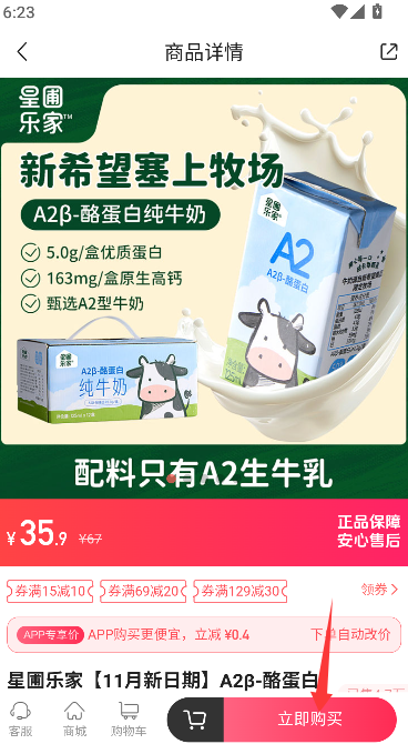 3、遇到合适商品后直接点击"立即购买"按钮,系统将引导完成规格选择、收货地址确认及支付等后续购买流程。