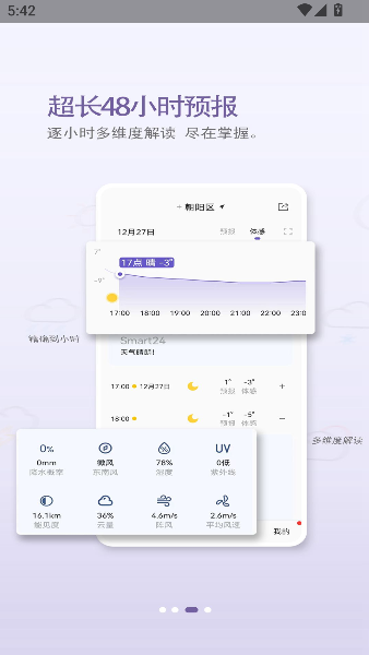 3、深度整合的气象信息矩阵。将预报、实况、预警、专业图表与生活指引深度整合,形成一站式气象信息解决方案。