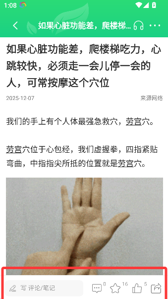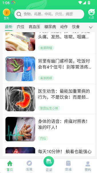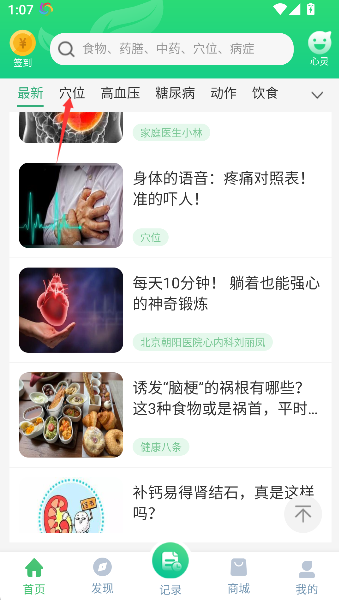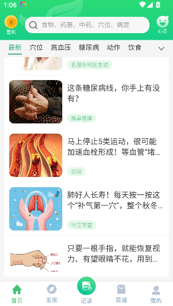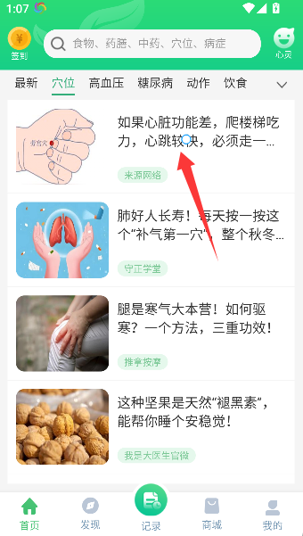 2、接着在知识菜单里选中今日“主菜”,无论是食补方子还是经络妙法,都像打开一个香气扑鼻的养生锦囊。