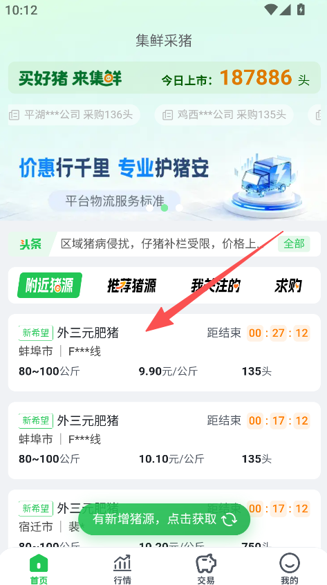 3、操作流程贴合交易习惯,从猪源查看至行情了解步骤直观,降低交易相关操作复杂度。