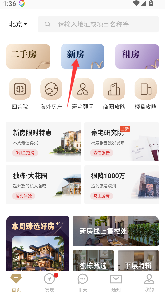 1、首先,轻点那个闪耀的“新房”按钮,犹如打开一本装满华丽别墅与平层相册的魔法百科全书。