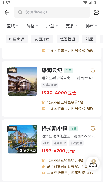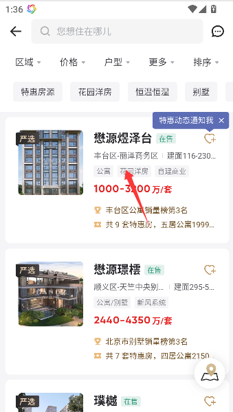 2、接着,在令人眼花缭乱的豪宅列表中,果断选中那套让你想象开始装修的“梦想标本”。