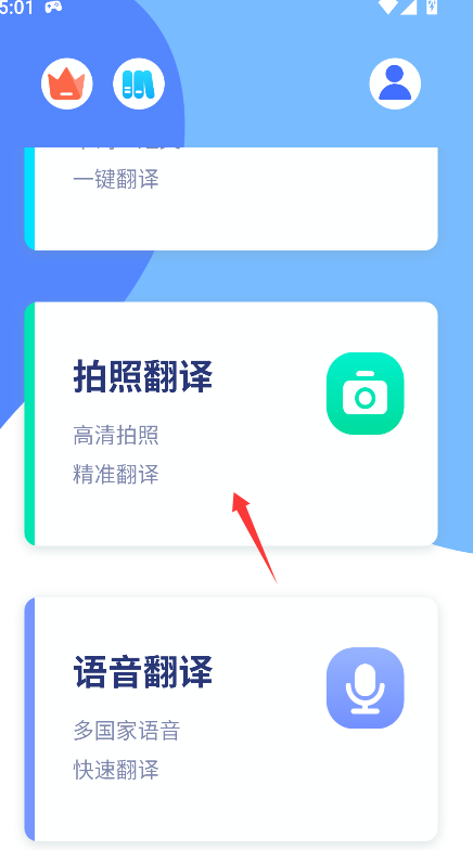 1、在应用主界面,找到并点击“拍照翻译”功能按钮,进入相机拍摄模式。