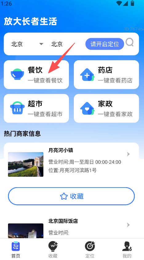 《放大万事兴》是一款长者生活服务类软件,设首页、收藏等板块,涵盖餐饮、药店等本地服务分类,点击对应分类可查看商家列表,选择商家能进入详情页获取营业信息,还能操作拨号、导航,功能适配长者本地生活场景,满足日常服务查询与使用需求。