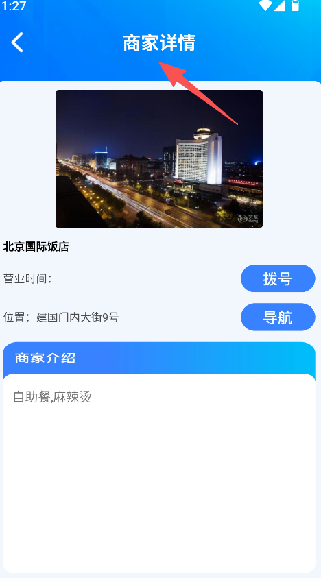 3、进入商家详情页,查看信息并操作拨号或导航。