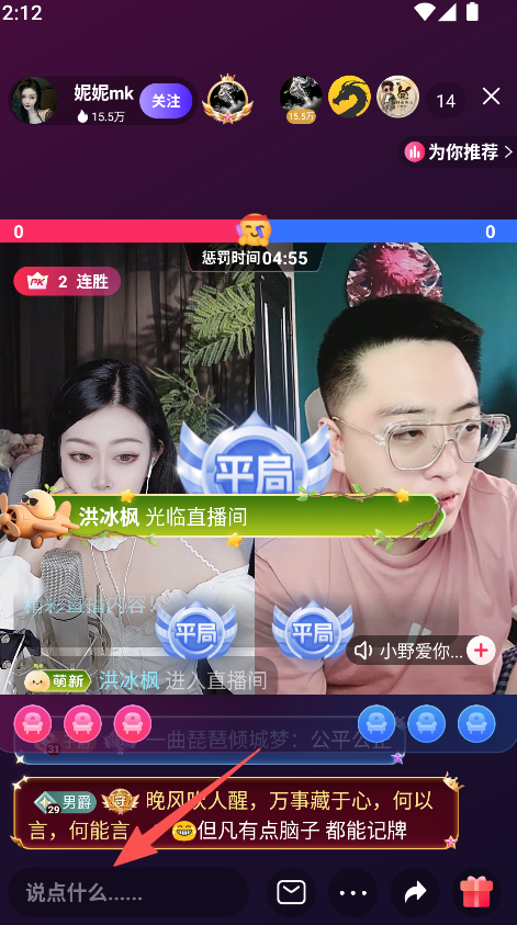 1、提供直播内容查看功能,进入直播板块,可选择推荐直播间观看直播及PK互动内容。