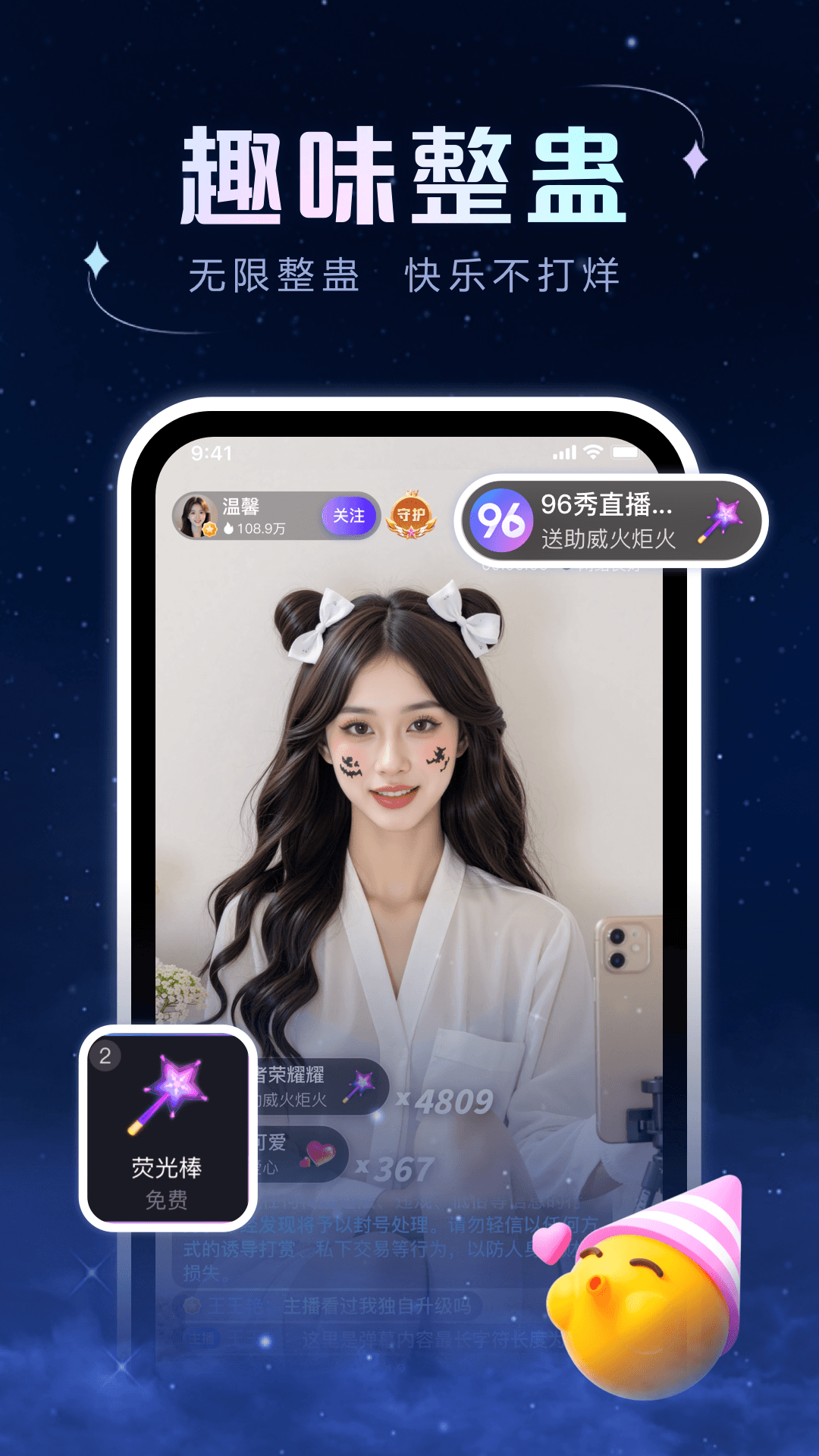 《96秀》是直播社交软件,支持直播观看、PK互动及用户私信等功能。- 类型:社交聊天