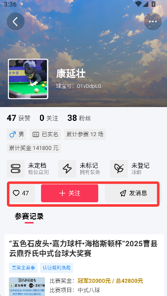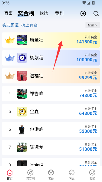 1、奖金榜像块荣誉磁铁,点开就能吸出一串闪闪发光的台球明星和他们的战绩列表。