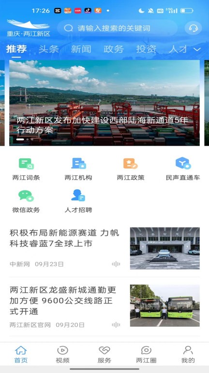 重庆两江新区是一款服务重庆两江新区的综合智慧应用,整合新闻资讯、政务服务、生活服务等多元内容。提供政策解读、事项办理、问政互动、志愿服务等功能,支持智能搜索与语音播报,打通政企民沟通渠道,满足信息查询、业务办理、生活需求。