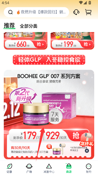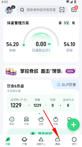 1、轻轻一点“商店”按钮,仿佛推开健康宝藏大门,里面堆满边吃边瘦的神奇零食和躺着练的健身神器,任君挑选。