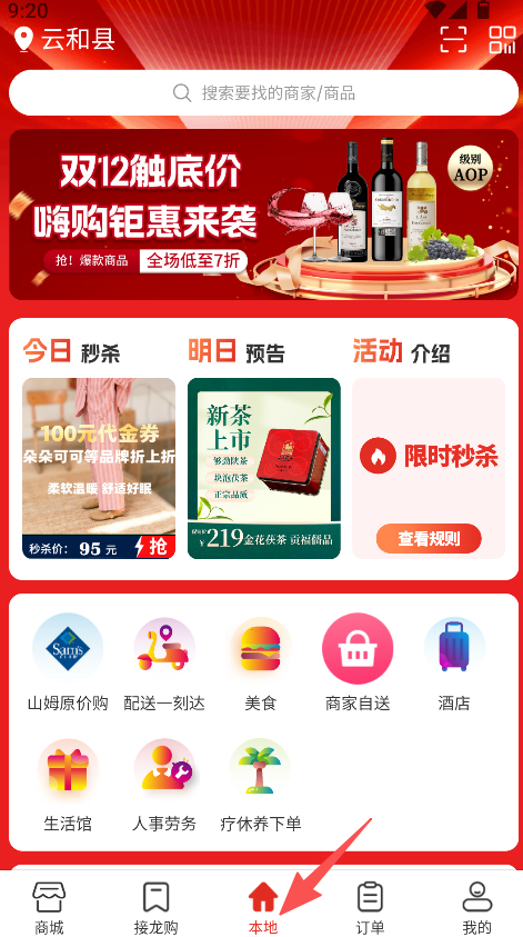 1、整合本地购物与生活服务,含秒杀美食等功能,一站式满足本地消费与生活服务的多类需求。