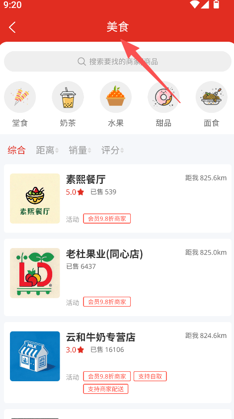 2、支持商品条目查看功能,在美食页面,点击目标商家的商品条目即可进入对应页面。