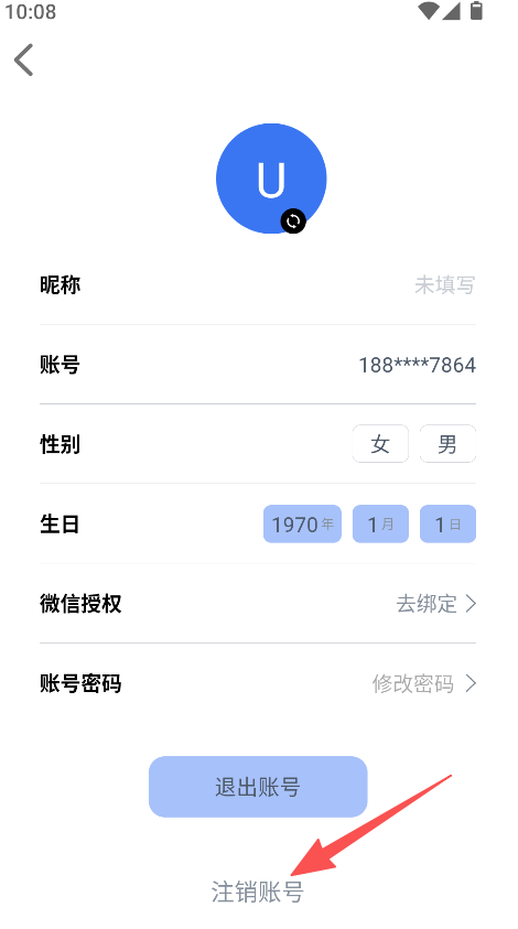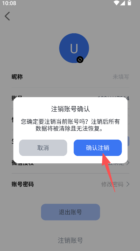 3、实现账号注销功能,在编辑资料页面操作注销账号,点击确认注销即可完成账号注销操作。